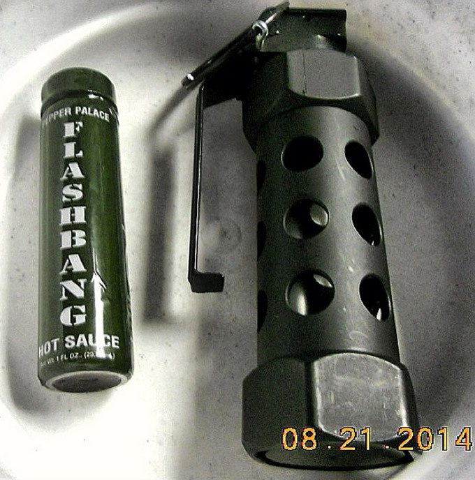 Flash grenade hot sauce. General's Dead Red Grenade Hot Sauce - Mo Hotta $12.50 Qty. Description Reviews Ingredients Our classic signature product. Made from Louisiana-grown, fully ripe red cayenne peppers hand-picked at exactly that right time, and then salted down and aged until the mash is perfect for conversion and bottling. THE GENERAL'S HAND GRENADE MARINE GREEN HOT SAUCE 6oz The General's Marine Green Hot Sauce (6oz). In a very unique design collector bottle. Made from green cayenne peppers picked just before they turn red for a unique taste. Try this medium hot sauce on eggs, wings, tacos or burritos and more . A portion of every bottle goes to help support veterans. FLASHBANG!!! Declare WAR on your tastebuds! If you are looking for the ultimate challenge with heat that will overwhelm your senses, FLASHBANG HOT SAUCE is it. Just like the stun grenade shell it comes in, you will be blown away. Only one drop is needed, as the initial heat is obvious and explosive, and the lasting heat will remind you of the big BANG for longer than you prefer. Your vial of FLASHBANG HOT SAUCE is protected by a collectable and unique container. If you're traveling by air, take care! Hot Sauce and Hand Grenades: 2011 The space between the elevator and my room was never far enough to escape the sound of her cackling as she watched me scurry away in horror, preparing to flash the next unlucky soul who needed to use the elevator." This piece was successful in the end, because I found the protagonist to be a metaphor for the building itself.