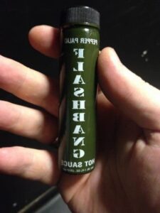 Flashbang Hot Sauce, An Explosive Heatwave On Your Taste Buds! The reason why this hot sauce is shaped like a stun grenade is because it will cause a flash explosion in your mouth thanks to its deadly (metaphorical) mixture. It is going to dominate your taste buds which may cause them to feel numb for about two weeks. One of the possible side effects is the loss of the ability to taste.