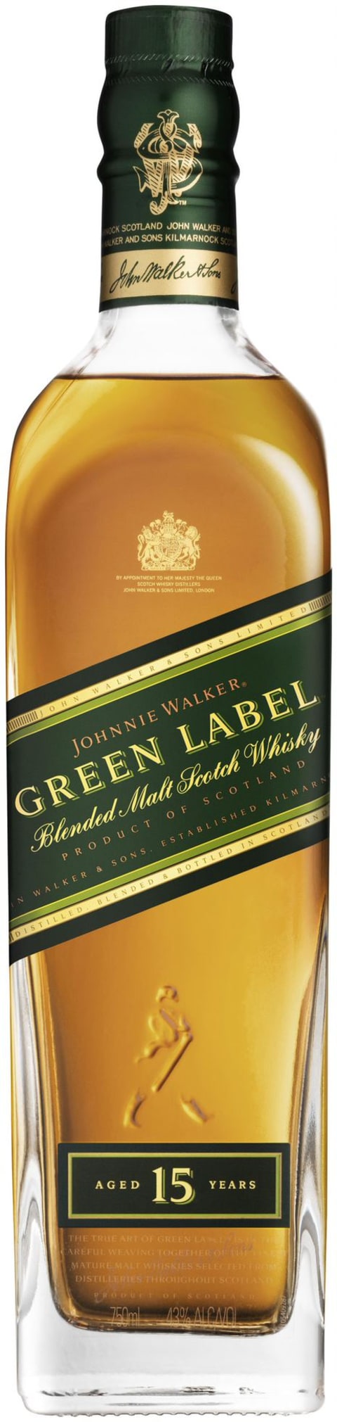 Johnnie Walker Green Label - Top Shelf Wine & Spirits Johnnie Walker Green Label $64.99 $69.99 Johnnie Walker Green Label is crafted from a palette of Speyside, Highland, Lowland and Island malts matured for at least 15 years - all perfectly balanced to bring together the intense aromas of crisp cut grass, fresh fruit, wood smoke, deep vanilla, and sandalwood. TASTING NOTES