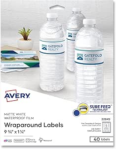 Avery Durable Wraparound Water Bottle Labels, 22845, 9-3/4" x 1-1/4", White Avery Durable Wraparound Water Bottle Labels, 22845, 9-3/4" x 1-1/4", White Blank Labels Custom Printing Products Help Templates Blog Avery ® Durable White Wraparound Labels 9¾" x 1¼", Permanent Adhesive, for Laser and Inkjet Printers Durable White Film (Laser) / White / Permanent 22845 Quantity $ 23.99 Regular Price $ 23.99 Add to Cart