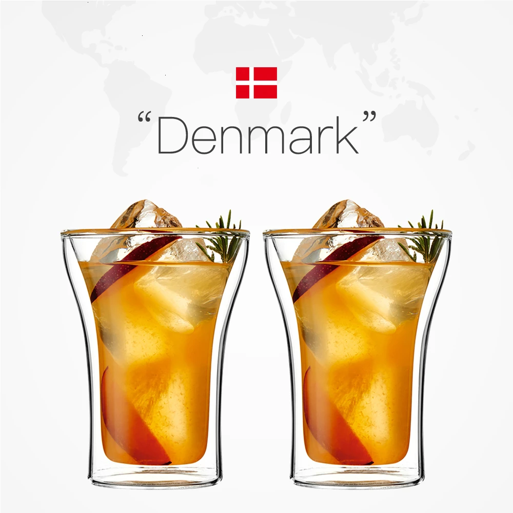 Denmark Baru Desain Dinding Ganda Kacamata Assam Susu Teh Kaca Anggun Vacuum Cafe Latte Kopi Cappuccino Mug Bir Minuman Dingin piala