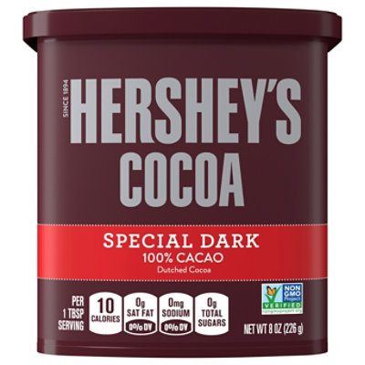 HERSHEY'S, SPECIAL DARK Dutched Cocoa, Gluten Free, No ... - Walmart Instructions. For rich chocolate desserts, try Hershey's® cocoa in recipes calling for baking chocolate.Hershey's® Special Dark® cocoa is perfect to use in any recipe that calls for dutch processed cocoa and can also be substituted in recipes calling for unsweetened cocoa or baking chocolate.3 level tablespoons of cocoa + 1 tablespoon shortening or oil = 1 ounce unsweetened baking chocolate ...