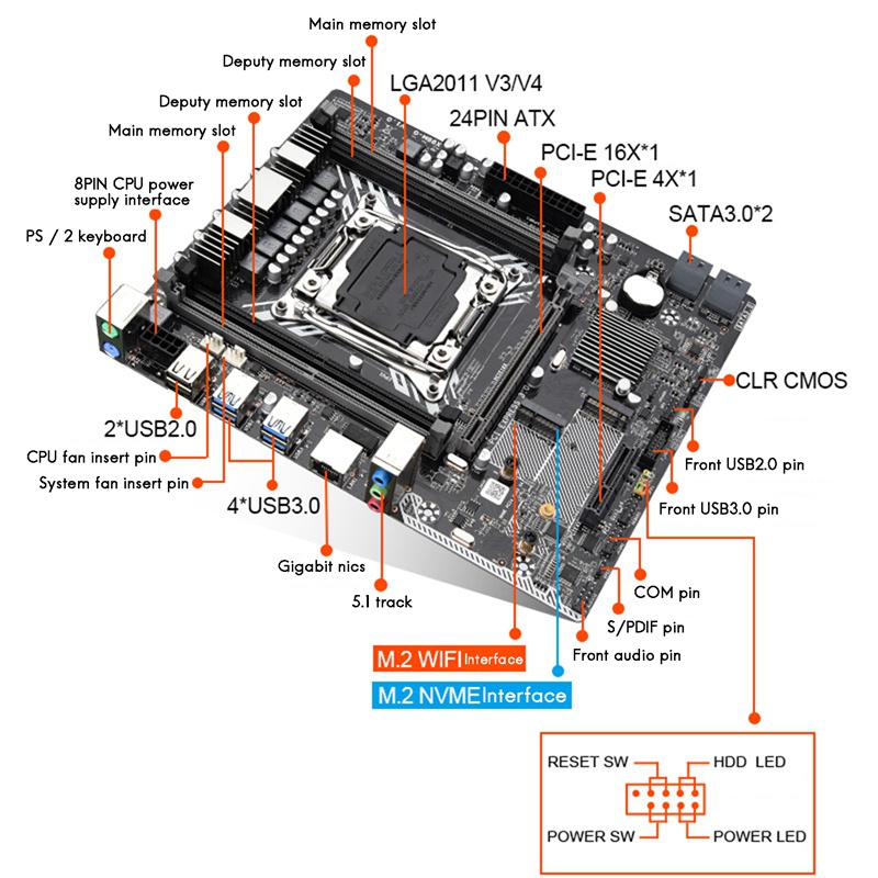 Computer Motherboard And Its Components - kencorner Below Diagram show component of motherboard Here we are using Asus H110M-cs motherboard (1) TPM connector (14-1 pin TPM) (2 ) ATX power connector (3) CPU socket (4) CPU and chassis fan connector (5) DDR4 DIMM slots (6) Serial ATA connector (7) System Front panel connector