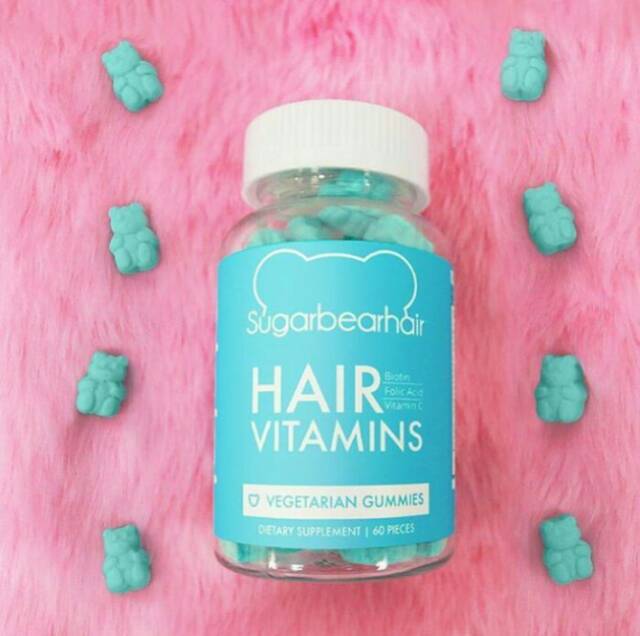 SugarBearHair Hair Vitamins Review - Must Read This Before Buying The beautiful blue bears provide Biotin, Folic Acid, and Vitamin C, while the pretty pink ones provide Omega 3, Vitamins C, and B-12, and more! This multi-set costs $59, and lets you try their bestsellers at once so you can see what the hype is about. Plus, their natural flavors make them taste and feel like candy.