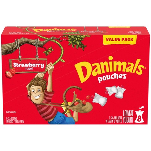 Strawberry Nonfat Kids Yogurt - Danimals Ingredients Cultured Grade A Non Fat Milk, Cane Sugar, Water, Modified Corn Starch, Strawberries, Contains Less Than 1% Of Natural Flavors, Fruit And Vegetable Juice (For Color), Agar Agar, Vitamin D3, Lemon Juice Concentrate. Contains Active Yogurt Cultures Pack sizes available Single Serve nutritional Information MORE Nonfat Yogurt FLAVORS