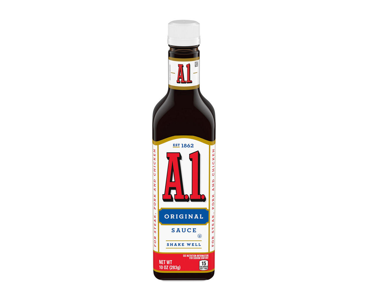 A.1. Original Steak Sauce (15 oz Bottle) - Amazon.com One 15 oz. bottle of A1 Original Sauce. A1 Original steak sauce is the perfect complement to burgers, steak, chicken, pork, vegetables and more. Our Original Steak Sauce combines tomatoes, crushed oranges, garlic and an intricate mix of spices. Use our tangy sauce as a marinade, brush it on while grilling or pour it on your entrée at the table.