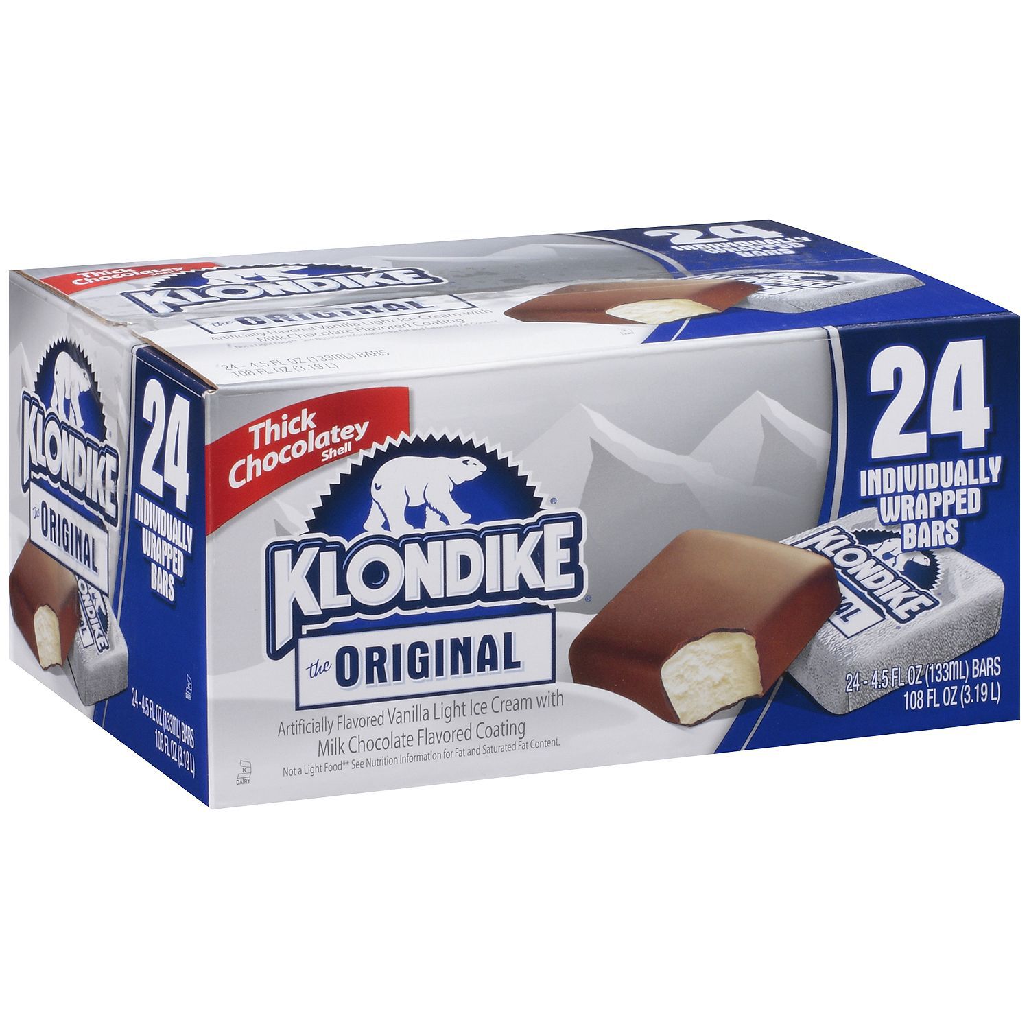 Original No Sugar Added Ice Cream Bar | Klondike® Calories: 180 Ingredients Nonfat Milk, Maltitol Syrup, Coconut Oil, Maltodextrin (Corn), Maltitol, Whey, Cream, Cocoa Powder, Less than 1% of the following: Soybean Oil, Mono and Diglycerides, Locust Bean Gum, Natural and Artificial Flavor, Soy Lecithin, Guar Gum, Acesulfame Potassium, Carrageenan, Aspartame*, Water, Sucralose, Caramel Color, Vitamin A Palmitate Klondike bar Nutrition Facts & Calories - Inlivo Calories in 1 Bar (2.9 oz) 282 calories / 171 from fat Carbohydrates 29 g Proteins 3.6 g Fat 19 g Saturated Fat 11 g Calories Nutrition Risky Content High Density (3.5 cal/g) High Density (6.2 %/cal) High Density (1.4 %/g) NUTRITION FACTS (% of daily value based on 2000 calories per day) Protein Carbs Fiber Fat Saturated Fat Cholesterol Sodium The Original Ice Cream Bar | Klondike® Nutrition Facts Serving size based on 6 ct multipack: 1 bar (85g) Amount per serving Calories: 250 Ingredients