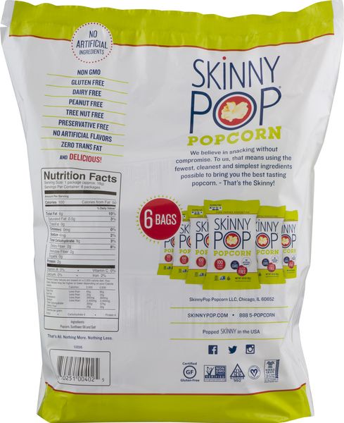 Amazon.com: SkinnyPop Popcorn, Gluten Free, Dairy Free, Non-GMO ... SkinnyPop Popcorn, Gluten Free, Dairy Free, Non-GMO, Healthy Snacks, Skinny Pop Original Popcorn, 1oz Individual Size Snack Bags (12 Count) 19,902 11 offers from $23.88 SkinnyPop Original & White Cheddar Popcorn Variety Pack, 14ct, 0.5oz Individual Snack Size Bags, Skinny Pop, Healthy Popcorn Snacks, Gluten Free 1,432 2 offers from $15.45