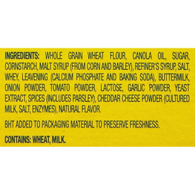 Multigrain | Wheat Thins whole grain wheat flour, unbleached enriched flour (wheat flour, niacin, reduced iron, thiamine mononitrate vitamin b1, riboflavin vitamin b2, folic acid), whole grain barley flakes, canola oil, sugar, whole grain rye, whole grain triticale, molasses, whole grain millet, whole grain wheat, salt, whole grain rolled oats, onion powder, soy …