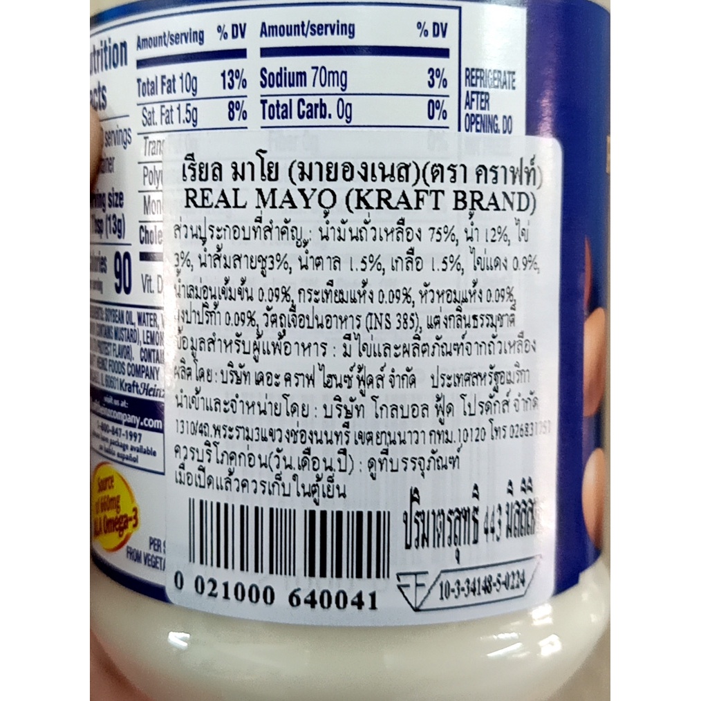 Kraft mayonnaise nutrition label