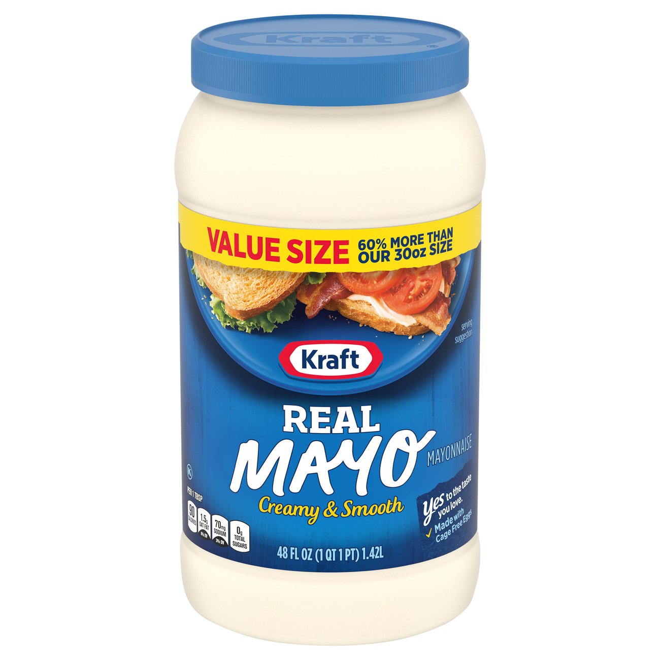 Kraft Mayo with Olive Oil Reduced Fat Mayonnaise - kroger.com For the best quality, refrigerate this 30 oz. jar of mayo after opening. One 30 fl. oz. jar of Kraft Mayo Reduced Fat Mayonnaise with Olive Oil. With 50 calories per serving, add Kraft Mayo Reduced Fat Mayonnaise with Olive Oil to your Memorial Day or Fourth of July BBQ. Our mayo pairs well with coleslaw, hamburgers, chicken sandwiches and all ... Hellmann's, Real Mayonnaise - SmartLabel™ - Unilever Cholesterol 5 mg 2% Sodium 90 mg 4% Total Carbohydrate 0 g 0% Protein 0 g Not a significant source of dietary fiber, total sugars, added sugars, vitamin D, calcium, iron and potassium. * The % Daily Value (DV) tells you how much a nutrient in a serving of food contributes to a daily diet. 2,000 Calories a day is used for general nutrition advice. › calories-nutrition › usdaCalories in Mayonnaise and Nutrition Facts - FatSecret There are 57 calories in 1 tablespoon of Mayonnaise. Get full nutrition facts and other common serving sizes of Mayonnaise including 1 oz and 100 g.
