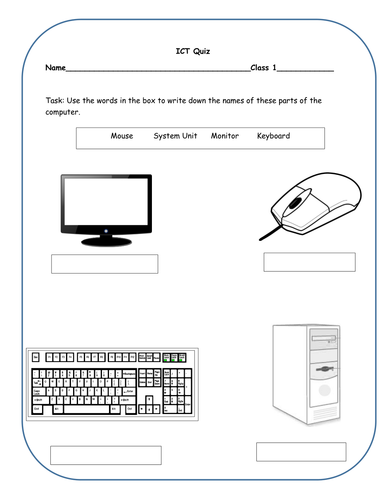 Parts of a Computer Worksheets - Super Teacher Worksheets Parts of a Computer - Blank/Label. On this worksheet, students label the major parts of a computer, including the modem/router, monitor, mouse, keyboard, CPU, and printer. 2nd through 4th Grades.