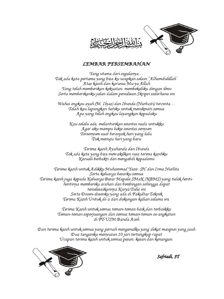 Untuk Dosen Pembimbingku, Terima Kasih Telah Mengantarku Sampai Gelar ... Namun satu yang ku syukuri, bahwa di antara perjuangan berat, tetap ada ibu di sana memberi stok semangat. Ibu bukanlah sosok lembut yang akan menyediakan senyuman setiap kali bimbingan. Sebaliknya, dirimu selalu memiliki setiap kritikan atas setiap kesalahan yang kulakukan. Tak jarang pula, ibu memarahiku jika membuat keliruan yang berulang.