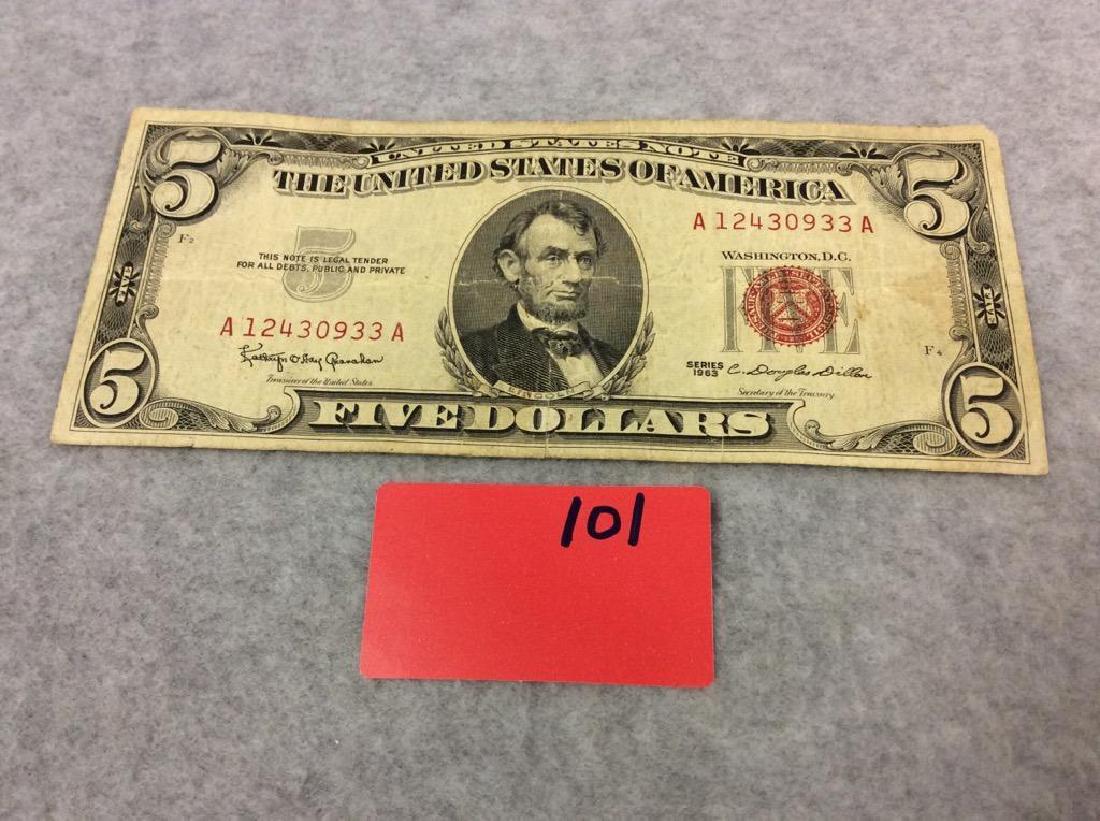 1963 $5 Red Seal Value - How much is 1963 $5 Bill Worth ... Five Dollar Notes › Legal Tenders › 1963 Five Dollar Legal Tender Or United States Notes Limited Value - No Submissions Find other notes you possess from menu. Submit where indicated. Other $5 Bills No Obligations Offers and Appraisals Please submit a good photo or scan. It will be identified and evaluated. Value of Old Five Dollar Bills? | Price Guide - Old Money Prices The last type of $5 bill we wanted to share was the issue 1928 Red Seal Legal Tender Note. The five dollar red seal 1928 note is a small size bill, meaning its the same size as today's money. Old bills with unique serial numbers, like the five pictured above, will bring a higher premium in the marketplace. 5 Dollar 1963 Red Seal - Etsy Series 1963 RED SEAL 5 Dollar U.S.Note legaltendercoins (9) $18.00 FREE shipping 1963 red seal Five Dollar United States Note (#E222F) AffordableRareCoins (1,230) $15.22 $17.50 (13% off) FREE shipping Lot of 5 Five Dollar Lincoln Red Seal Dollars Certificate Old Estate Money Lot 1953 - 1963 PalmIslandTreasures (1,593) $59.00 1963 Series 5 Dollar Red Seal US Note rare - Etsy 1963 series 5 Dollar red seal US Note (rare) AgcshopUS 50 sales Add to cart if you order today. 12 shop reviews Sort by: Suggested Not exactly pleased. Picture did not look like what I viewed online. It was just a little canvas inside a frame. Frame was knicked up. Not pleased with price I ended up paying. Not sure this was really an old painting.