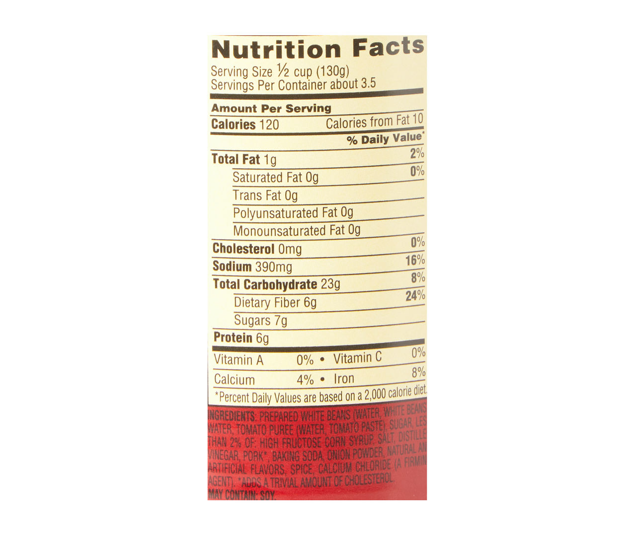 Van camp's pork and beans nutrition